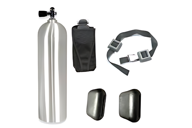 Certified, regularly inspected tanks filled with clean compressed air — plus adjustable weights for perfect buoyancy control.